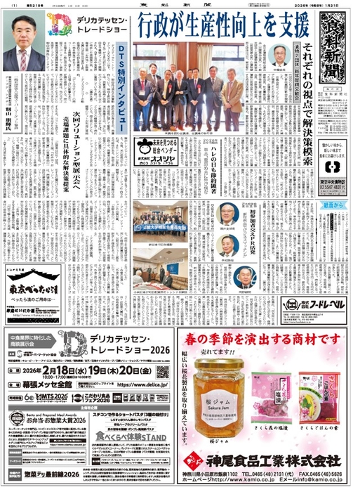 本紙は2月18日~20日に幕張メッセ全館(千葉市)で開催される「第60回スーパーマーケット・トレードショー(SMTS)2026」(主催:一般社団法人全国スーパーマーケット協会)に出展しています(小間番号10‐116)。